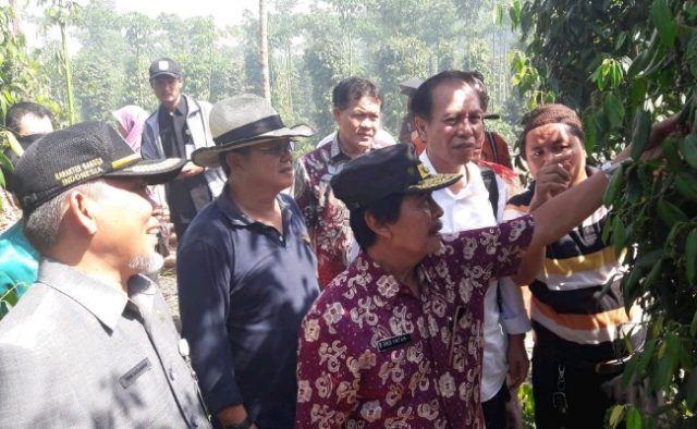 Matanurani, Namang, Bangka Tengah – Ketua Kelompok Kerja (Pokja) Pangan, Komite Ekonomi dan Industri Nasional (KEIN) Benny Pasaribu beserta rombongan, Kamis (19/4) siang mengunjungi Kebun Percontohan Lada di Kecamatan Namang Kabupaten Bangka Tengah Provinsi Kepulauan Bangka Belitung (Babel).