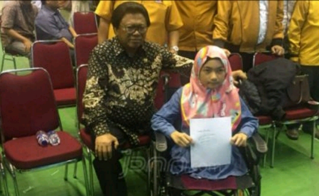 Saat membuka rapat kerja nasional (rakernas) I Partai Hanura 2018 di Gelanggang Remaja, Pekanbaru, Riau, Selasa (8/5), Oso mengumumkan menjadikan Bulan Kurnia Sari (10), sebagai anak angkat partai yang dipimpinnya. “Bulan adalah anak angkat Partai Hanura,” kata Oso.