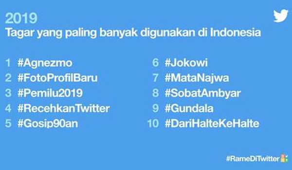 Inilah 10 tagar terpopuler digunakan masyarakat Indonesia tahun ini.