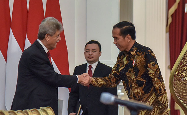 Matanurani, Jakarta – Presiden Joko Widodo menemui Ketua Komite Olimpiade Palestina, Jibril Mahmoud Muhammad Rajoub di Istana Merdeka, Jakarta, Selasa (21/8).