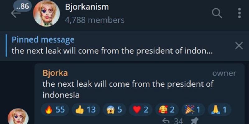 “Aktor jahat ‘Bjorka’, yang mempermalukan rakyat Indonesia, mengumumkan di akun Telegram miliknya bahwa target kebocoran data selanjutnya adalah presiden Indonesia,” cuit akun itu.