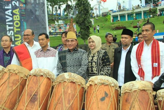 Matanurani, Parapat – Gubernur Sumatera Utara Edy Rahmayadi secara resmi membuka Festival Danau Toba (FDT) ke VII 2019 di Open Stage Parapat Kecamatan Girsang Sipangan Bolon, ditandai dengan pemukulan gondang didampingi Ketua PKK Ny Nawal Edy Rahmayadi, Bupati Simalungun JR Saragih, Wali Kota Pematangsiantar Hefriansyah Noor, Badan Pelaksana Otorita Danau Toba (BPODT) Arie Prasetyo, Ketua DPRD Simalungun Timbul Jaya Sibarani, Senin (9/12).