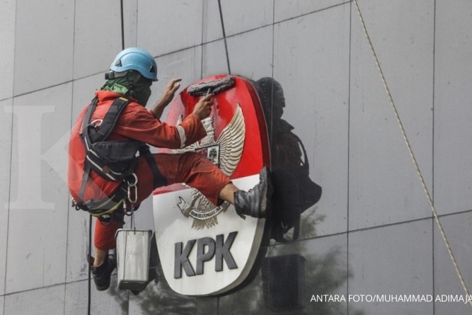 Pekerja membersihkan gedung KPK di Jakarta, Rabu (21/11/2018). Direktur Penelitian dan Pengembangan KPK Wawan Wardiana mengungkapkan, rata-rata skor Indeks Penilaian Integritas Tahun 2017 di 36 kementerian, lembaga, dan pemerintah daerah berada di angka 66, dimana Pemerintah Kota Banda Aceh merupakan daerah yang memiliki resiko korupsi rendah dengan skor tertinggi, yakni 77,39 sementara Pemerintahan Provinsi Papua sekitar 52,91 berada dipaling bawah. ANTARA FOTO/Muhammad Adimaja/hp.