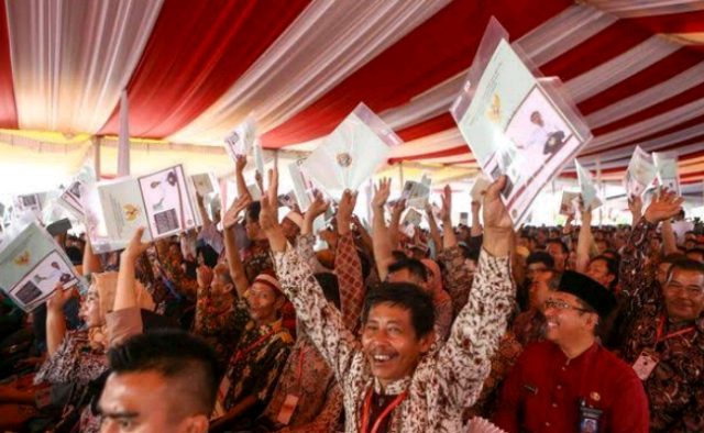 Kepala Negara menyebutkan masih ada 80 juta bidang tanah belum bersertifikat sehingga kalau setahun hanya terbit 500.000-600.000 maka perlu waktu tunggu 160 tahun. “Sertifikat ini diberikan karena setiap kali saya ke kampung, ke daerah baik di Sulawesi, Sumatera, Jawa, Kalimatan dan lainnya yang saya dengar sengketa lahan,” katanya.