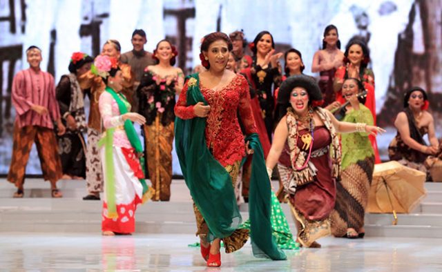 Pada momen itu, Susi membawakan kebaya merah yang dilengkapi dengan selendang hijau dan bawahan berupa kain emas.