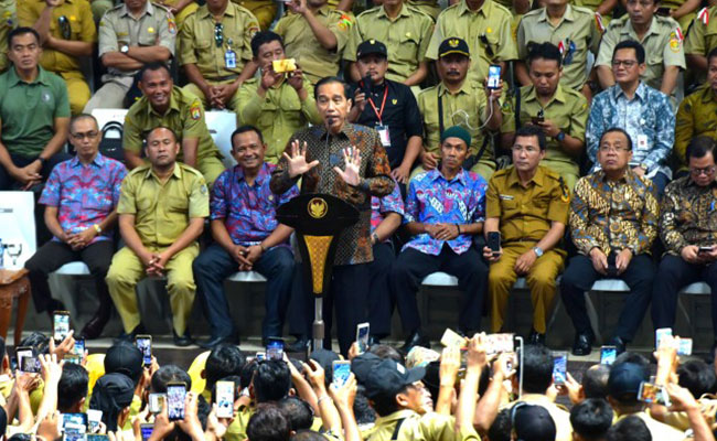 Presiden Jokowi pada silaturahmi dengan perangkat desa di Istora Gelora Bung Karno.