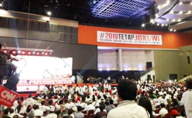 Sebelum memberikan sambutan Jokowi sempat menyapa dan menyalami relawan dari depan hingga belakang.