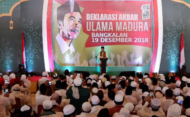 Hari ini Jokowi menghadiri deklarasi ulama se-Madura di Bangkalan. Sebanyak 5.000 ulama berkumpul di Gedung Serba Guna Rato Ebuh yang berasal dari daerah seperti Sampang, Pamekasan, Sumenep, dan Bangkalan.