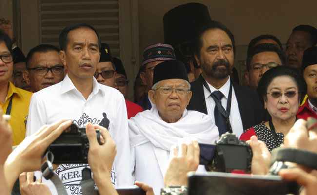 “Dan Rais Aam PBNU dan ketua Majelis Ulama Indonesia, artinya beliau memiliki rekam jejak dan pengalaman yang lengkap. Beliau memiliki pandangan yang sama dengan kita, dengan saya bahwa sebagai negara penduduk muslim terbesar kita harus mengatasi masalah kemiskinan kesenjangan dengan memperkuat ekonomi umat,” kata Jokowi.