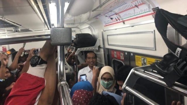 Dalam foto yang tersebar, Jokowi nampak berada di salah satu gerbong dengan penumpang lainnya. Ia ikut berdiri di antara kerumunan penumpang, dan berbincang sambil berpegangan pada salah satu hand grip.