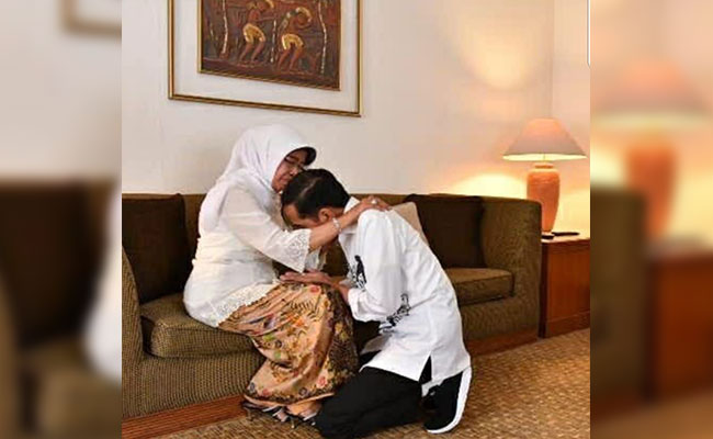 Hal tersebut terungkap dari akun instagram @jokowi yang mengunggah foto dirinya sedang sungkem di kaki sang ibu.