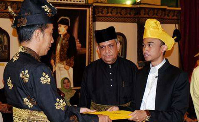 Matanurani, Medan – Presiden RI Jokowi mendapat gelar kebangsawanan tertinggi dari Kesultanan Deli, Sumatera Utara. Proses pemberian gelar tersebut dilaksanakan di Balai Room Istana Maimun Medan dihadiri ribuan masyarakat Melayu, Minggu (7/10) kemarin.