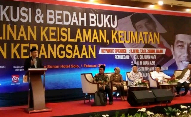 Matanurani, Solo – Bedah buku berjudul “Ulama Bertutur Tentang Jokowi, Jalinan Keislaman Keumatan dan Kebangsaan” di The Sunan Solo, Jumat (1/2), dihadiri berbagai tokoh. Di antaranya Cendekiawan muslim Tuan Guru Bajang (TGB), Muhammad Zainul Majdi, yang menjadi keynote speaker dalam bedah buku karya Mukti Ali Qusyairi.