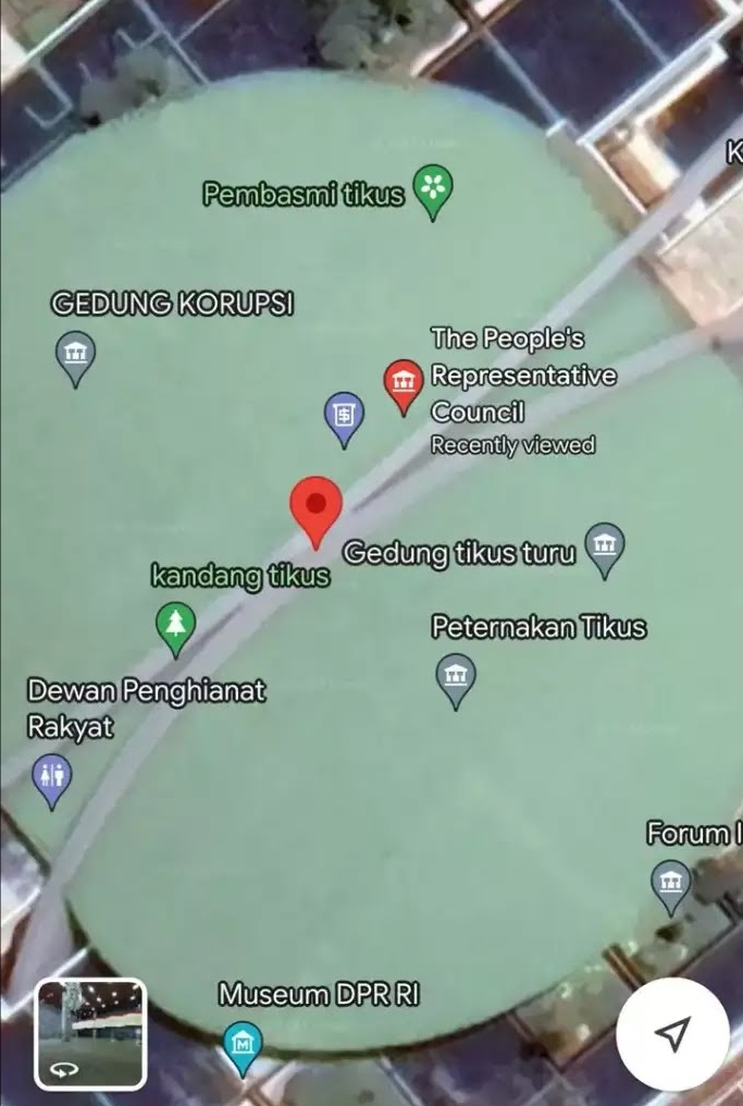 Matanurani, Jakarta – Media sosial mendadak ramai pada Senin (3/7) soal perubahan nama lokasi Gedung MPR/DPR RI di Senayan, Jakarta Pusat, yang berubah menjadi ‘Istana Tikus’ di aplikasi Google Maps.