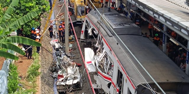 KRL yang melintas dari arah Jakarta tak punya pilihan selain menghantamnya. Lalu berhenti. Dalam jeda yang seharusnya menjadi ruang penyelamatan itu, datanglah Kereta Api Argo Bromo Anggrek dari belakang.